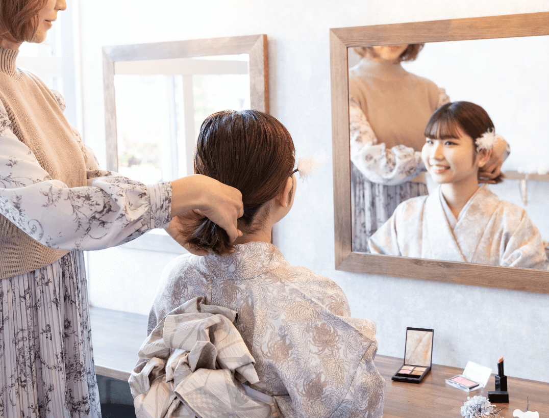 その他、担当スタッフによるヘアセットも承っております。お着物に似合うヘアアレンジで特別な一日をお過ごしください。